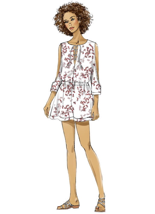 Vogue Patterns Sewing Pattern Misses Romper And Jumpsuit With Cold Shoulder And Lace Up N Xs S M Walmart Com